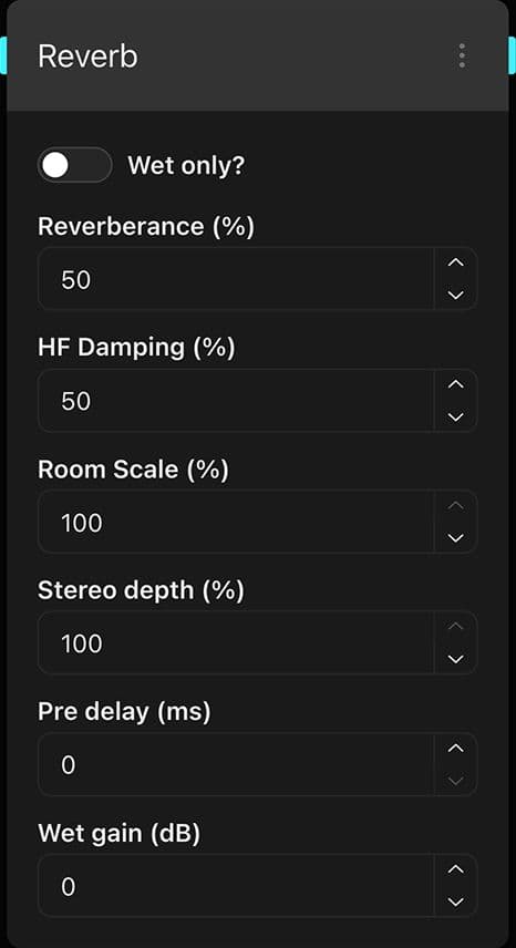 Percentage of reverberance, ranging from 0% to 100%.